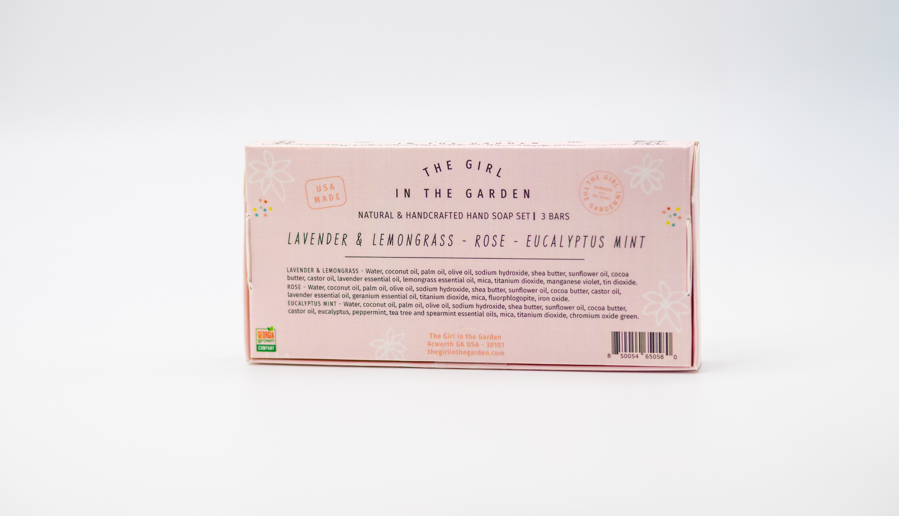 Refresh your daily ritual with The Girl in the Garden Natural & Handcrafted Hand Soap Set, featuring three beautifully curated scents: Lavender & Lemongrass, Rose, and Eucalyptus Mint. Each small-batch bar is made with gentle, skin-loving ingredients and crafted to elevate your self-care routine.