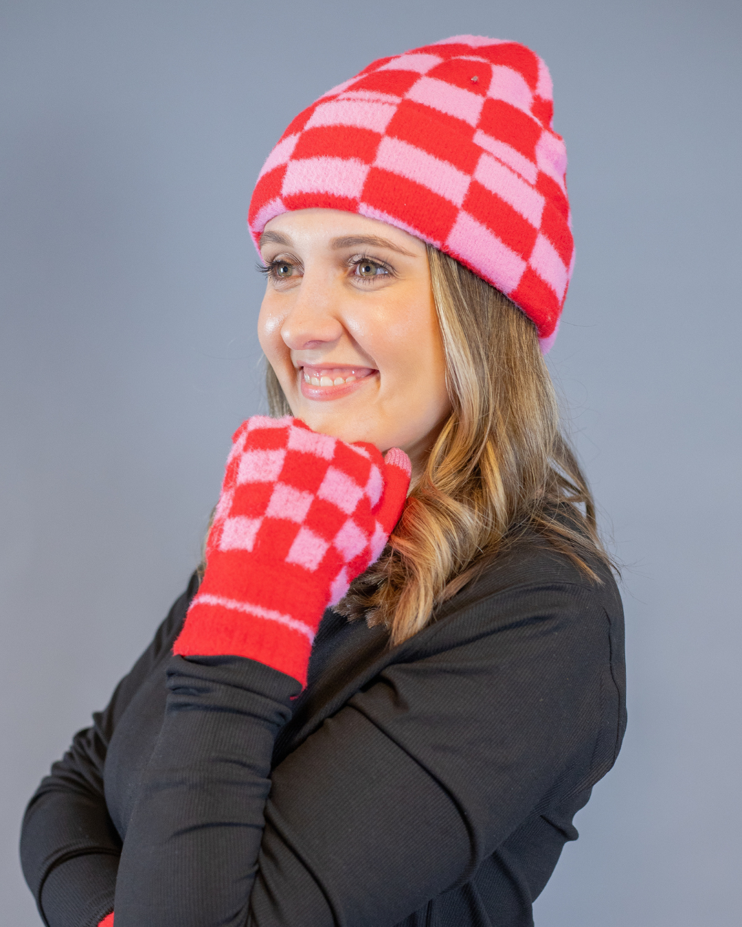 Soft, warm, and perfectly stretchy, it offers a comfortable fit that moves with you. With its playful design and cold-weather comfort, it’s the perfect piece to brighten up even the frostiest days. Matches perfectly with the checkered touch screen gloves!