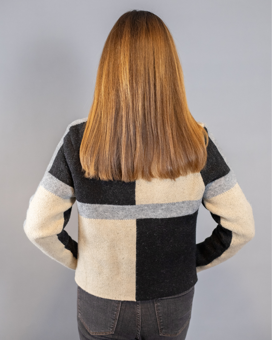 Elevate your everyday style with our Neutral Block Sweater, a chic and cozy layering piece perfect for fall and winter. Featuring a modern mix of neutral tones—cream, grey, and charcoal—this soft knit cardigan brings effortless sophistication to any outfit.