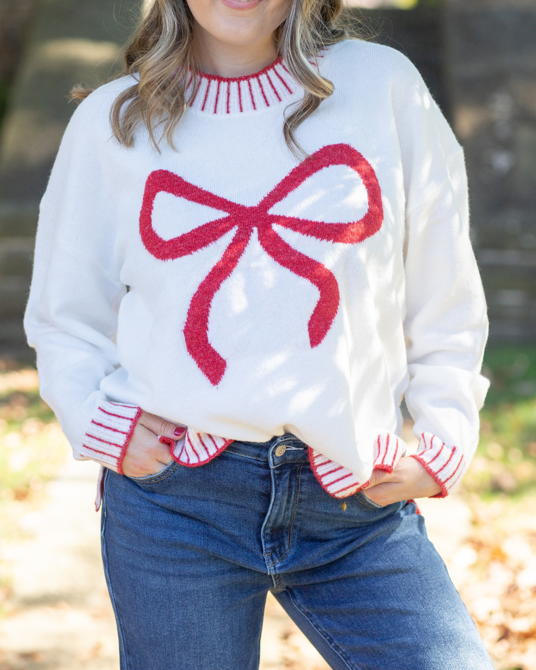 Holiday Bow Sweater - White